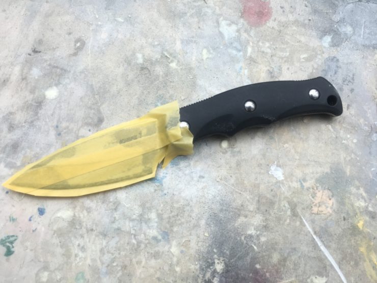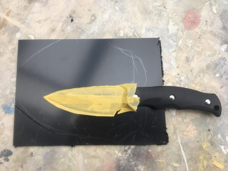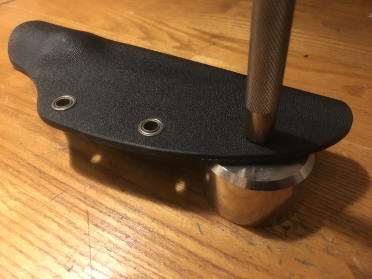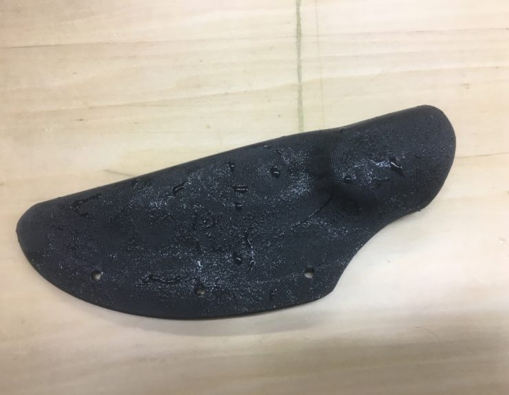 濡らしたタオルを当てて調整すると…カイデックスシースは失敗しても修正が効きますので、はじめてでも躊躇せず作ってみてください!!