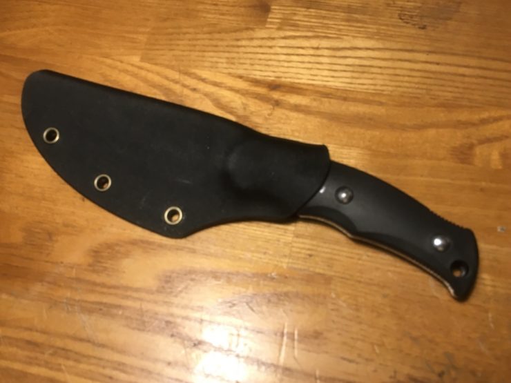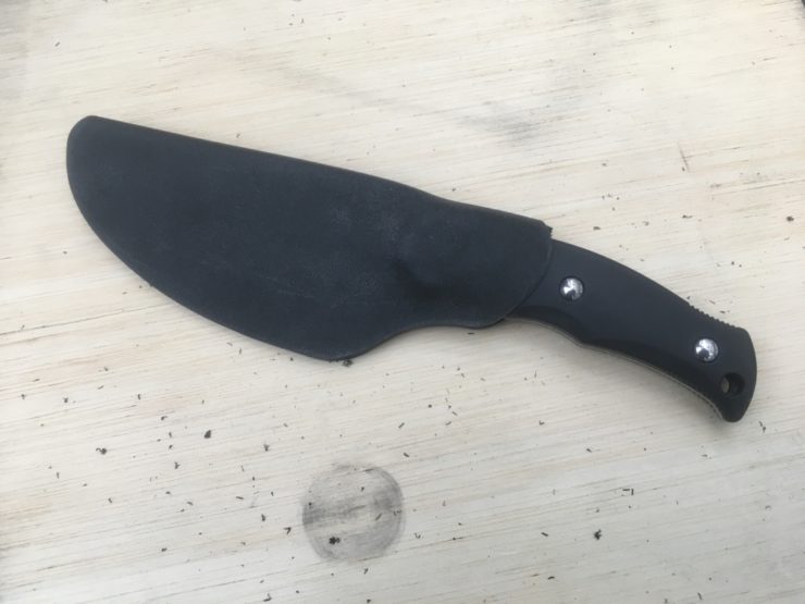 サビナイフは岐阜県関市のG・Sakaiという刃物メーカー製の錆びないナイフです。H-1という海水に一年つけても錆びない特殊な鋼材が使用されています。この鋼材はスパイダルコ(G・Sakai製)とG・Sakaiの2社しか扱っていない珍しいものです。そんなサビナイフですが、シースが緩いため改善が必要でした。(注:ナイフのケースのことをシースと呼びます。)