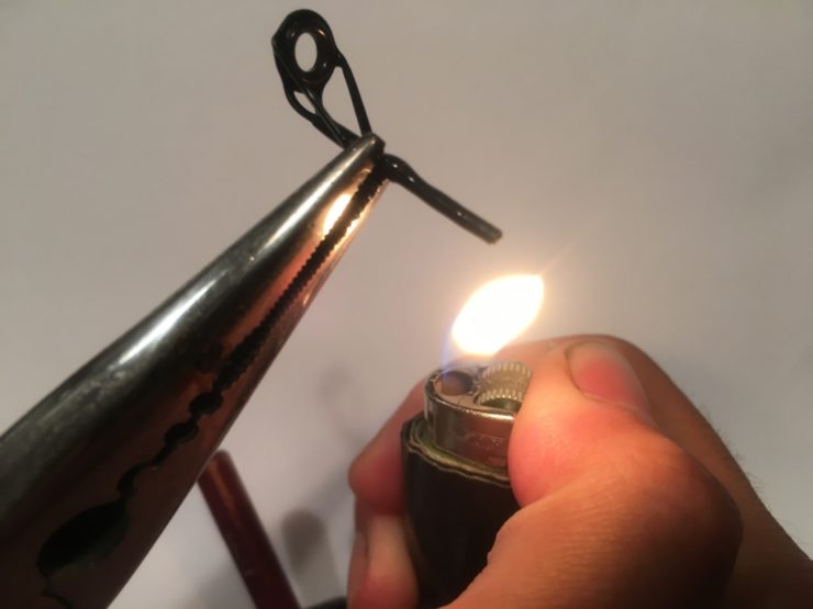 刺さった竿先を炙って中身を引っ張ります。