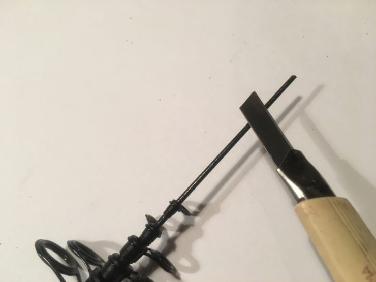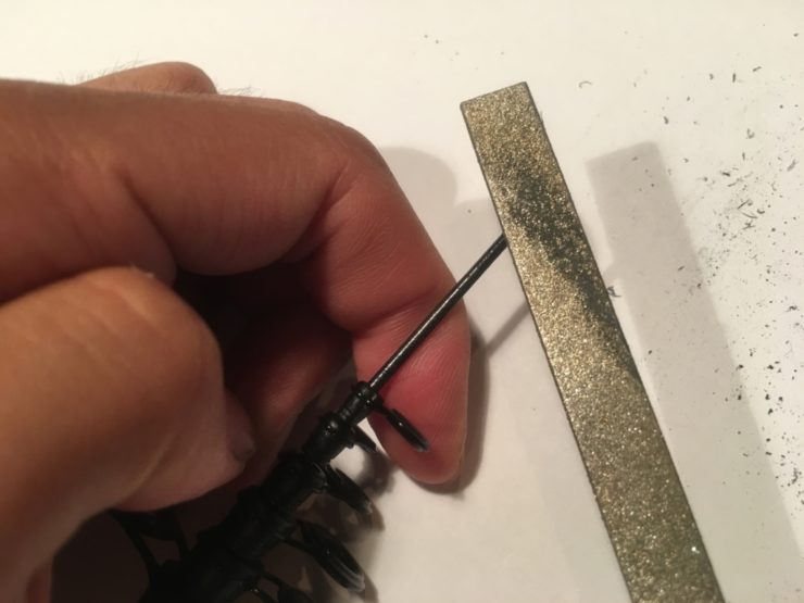 続いてカッターナイフ、ヤスリを使って先端がはまるように調整し