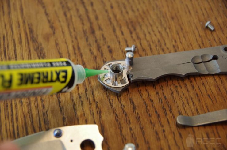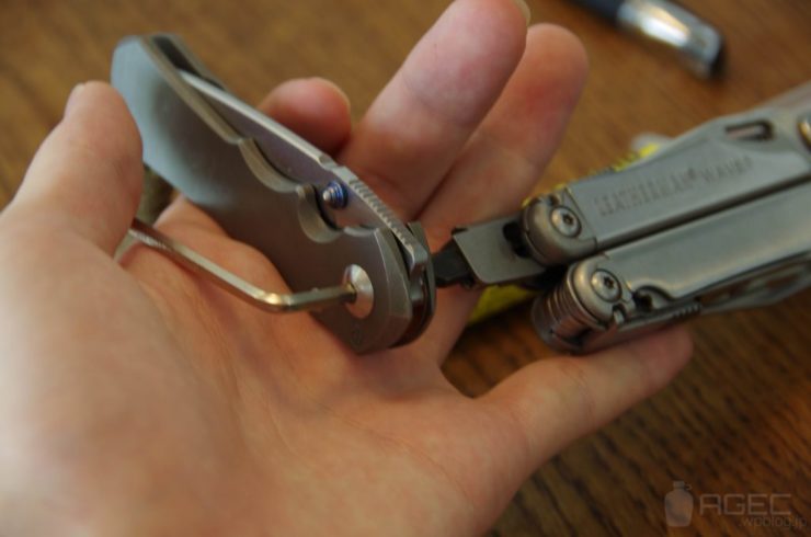 メインのピポッドは付属の1/8インチのレンチを2本使って分解します。1/8″レンチを1つ紛失していたので、今回はレザーマンのビットを使いました。