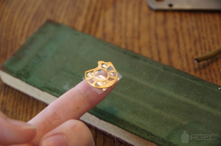 次にワッシャーを青棒と呼ばれるコンパウンドをつけた革砥で磨きました。