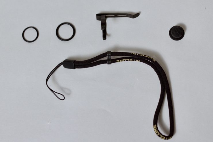 Oリング2つ、クリップ、交換用スイッチ、ランヤードが入っています。