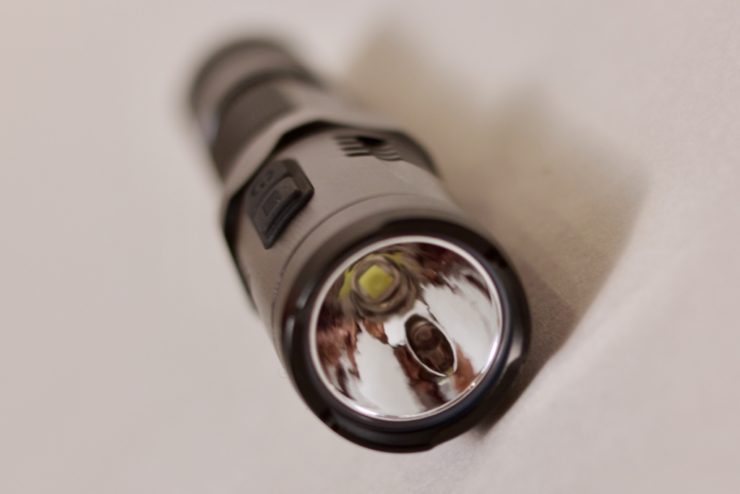 リフレクターは少しデコボコとしたオレンジピールリフレクター、赤色LEDが側面についています。ビームパターンは汚いということもなさそうです。