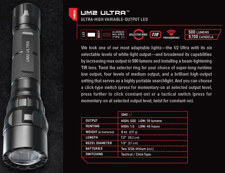 そうです。こいつに行きたかったんです。やや大きめのTIRレンズ、セレクターリング、そしてクリップのついた2セルモデル。こいつがUM2の元ネタと言うべきでしょう。