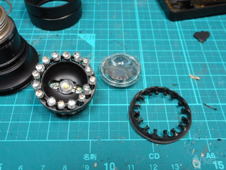LEDの台座部分も樹脂になっていました。シュアファイアがクローマを高出力化しなかったのは放熱が間に合わなかったからかもしれません。