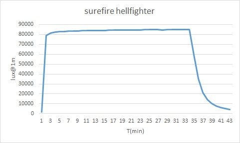 シュアファイア ヘルファイター 電池:FTX5L-BS(4000mAh) 室温:23.5℃ フィルター開放 冷却無し