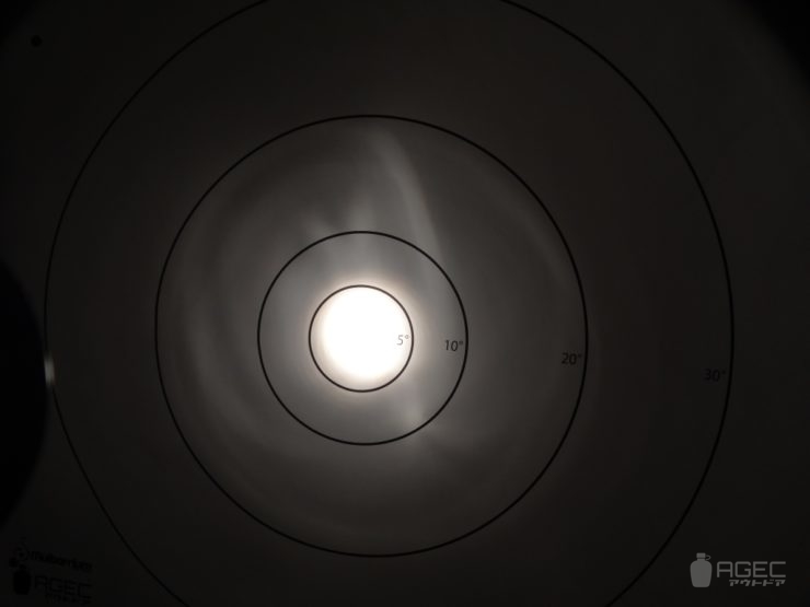 配光自体はリフの一般的なものですが、LEDと大きく異なる点はスポットの中心部が一番明るいです(LEDはスポットの周縁部が一番明るい)。