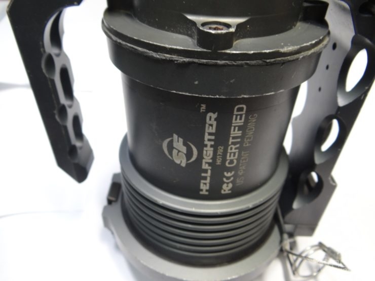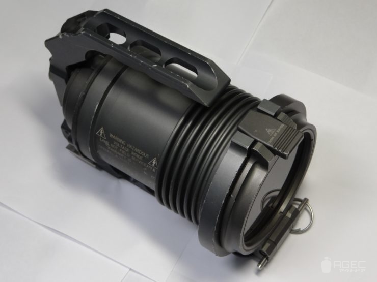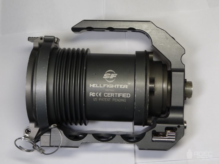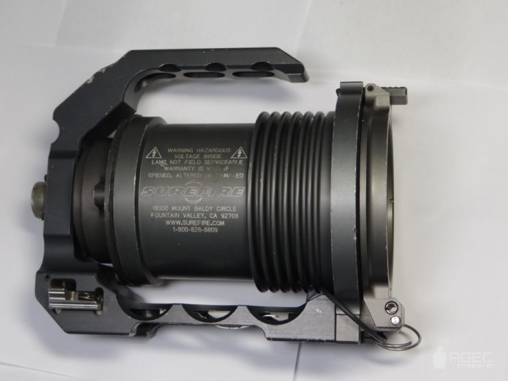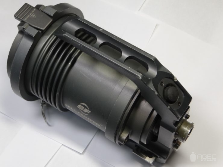 SUREFIRE Hellfighter 寸法:約L22cm×H17㎝×W12.5㎝(本体部のみ) 重量:約2.4㎏ 光源:HID 光束:3000lm ランタイム:約30分(4000mAhバッテリー) UI:シングルアウトプット、本体スイッチ-リモートスイッチ直列接続 電源:12V電源又はBA-2590/BA-5390/BA-5590 規格:ビーストと互換性有 フィルター:FM7x(本個体はFM73)