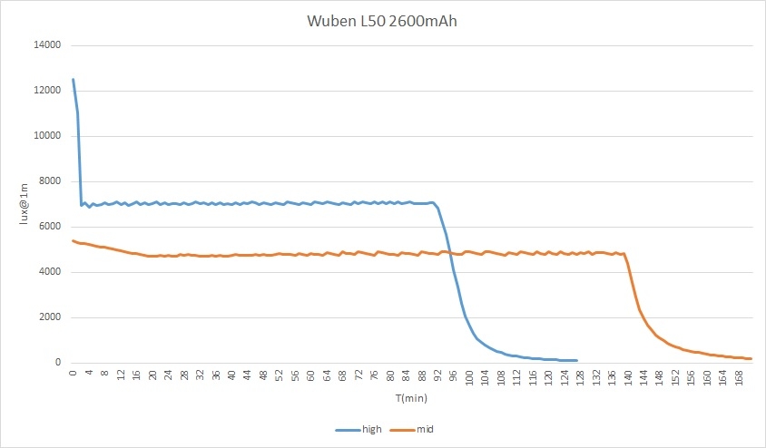 high1200lm(2min埌より段階的にステップダりン、10min埌に400lm)/1.5h