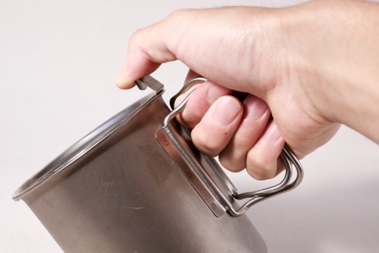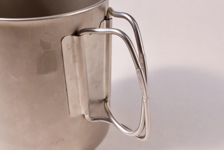 チタン製の持ち手はカップにフィットしています。少しだけ持ち手が噛んで握りやすくなります。
