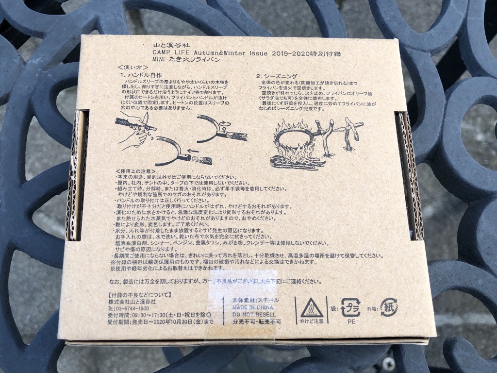 プレスでCAMPLIFEと入っています。雑誌中にはパンケーキを焼いている写真があったので、転写させるように反転しているみたいです。