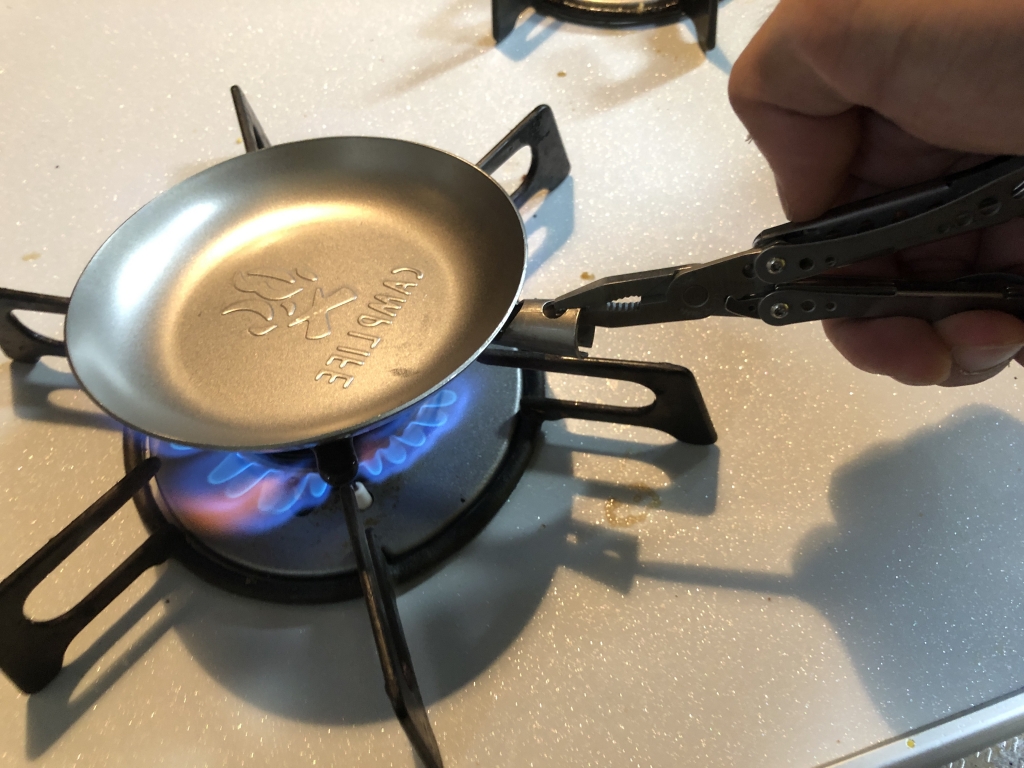 ソロキャンサイズですので一人でちょっと出かける時、ナイフとコレで調理なんてのも良さそうですね〜