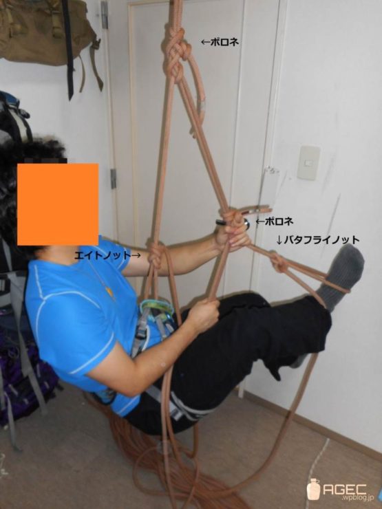 ※このスリングのうち1本は懸垂下降のバックアップに使用されていても大丈夫です。
