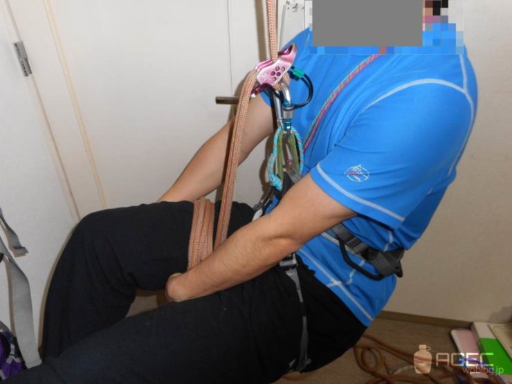 フリクションヒッチにぶら下がって下降器からテンションが抜けました。