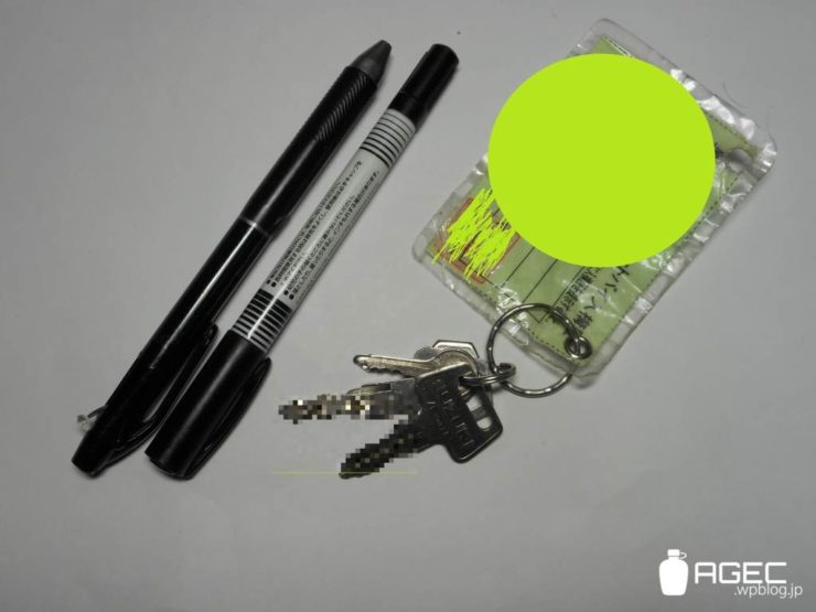 いろいろ試して一番使ってる組み合わせは名前ペンと黒赤シャープのペン。黒赤シャープのペンはビクーニャですがネジがすぐ緩んじゃうので買い替え検討中です。あとはバイクのキー。