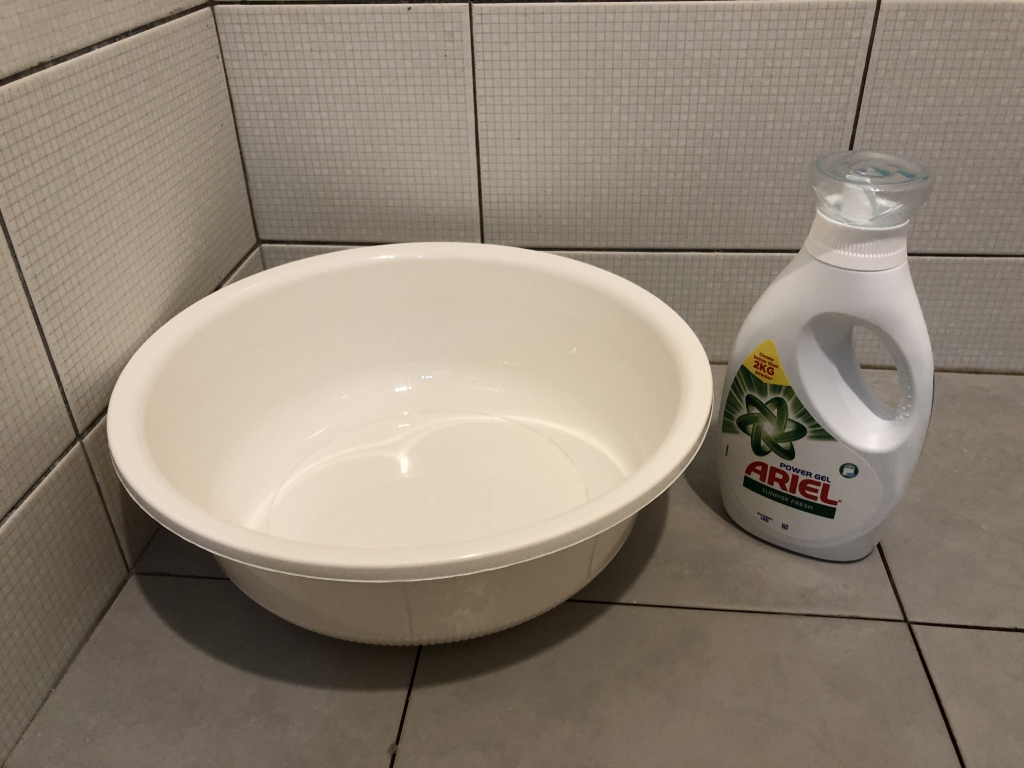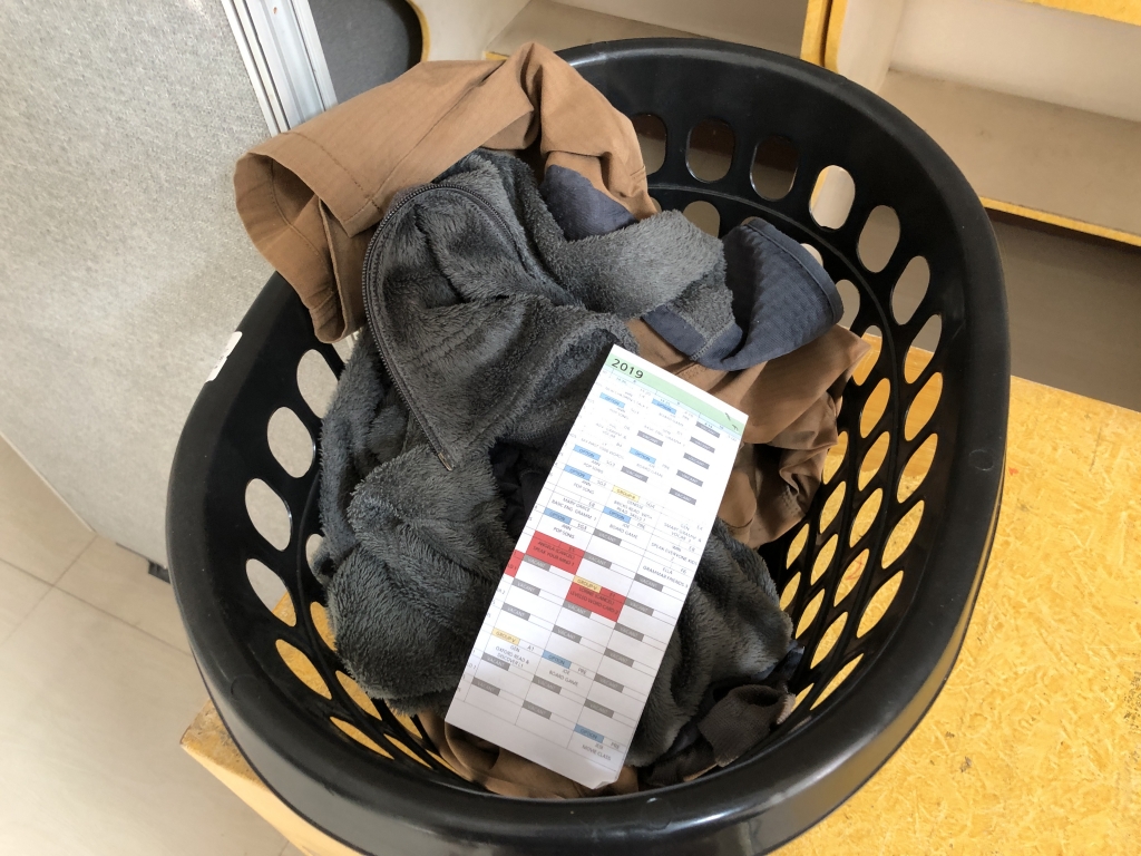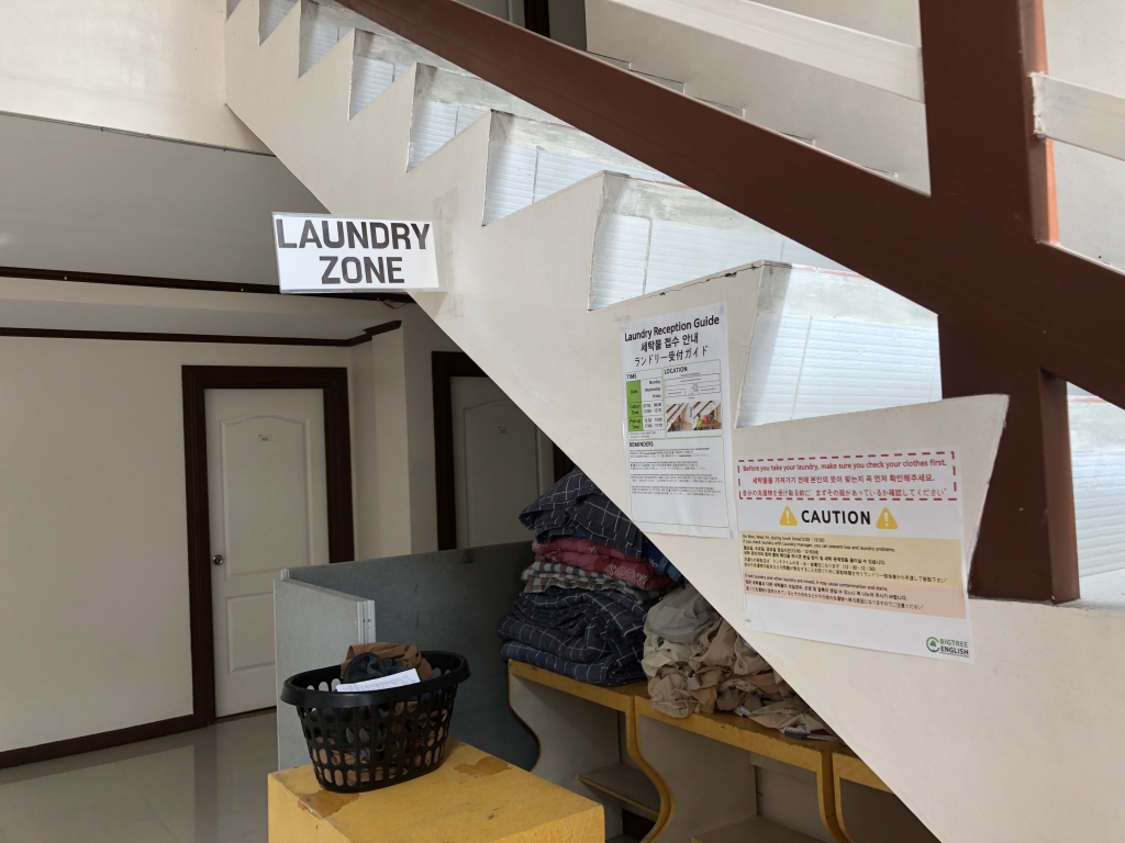 毎週3回洗濯をお願いできます。業者さんが持って行ってくれるみたいです。でも、中2日あるので毎日着るものは自分で洗うことにしました。洗剤とタライをSMで買ったので洗濯後部屋のハンガーにかけています。