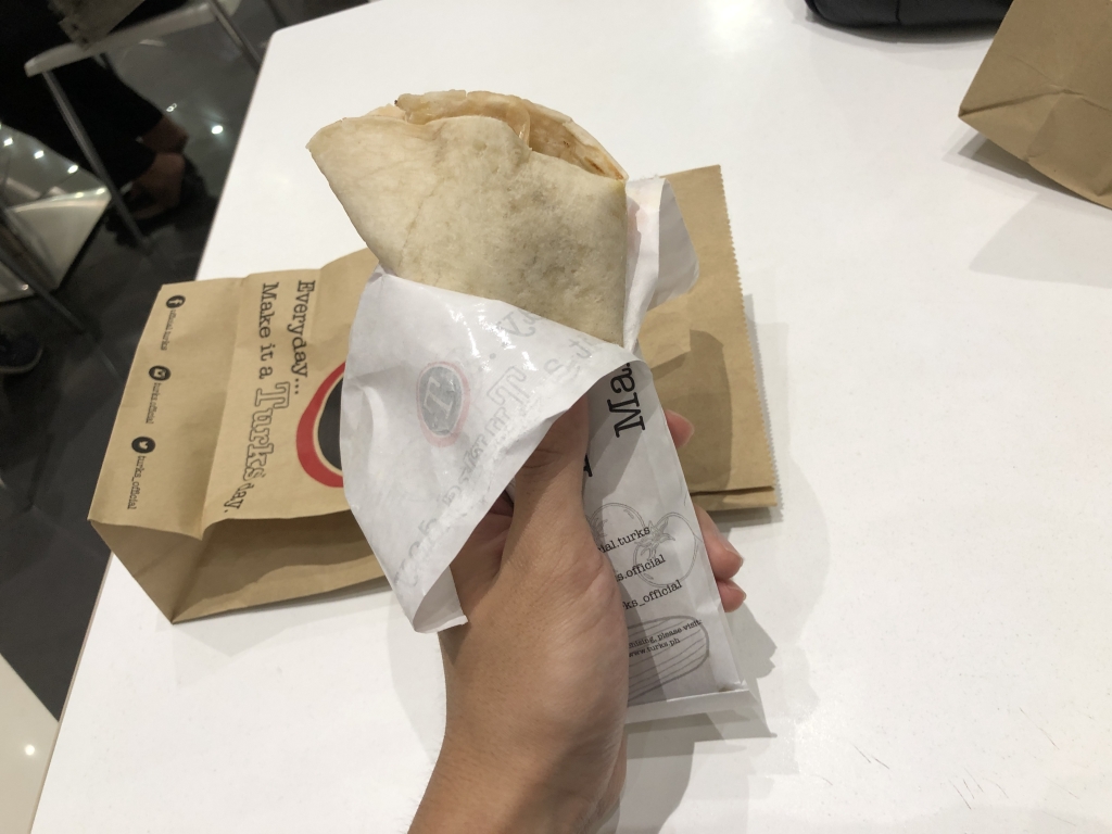 Turksのターキーです。60ペソで肉も入っていていい感じです!!肉は硬めのビーフですが肉感があってスパイシーで美味しいです。